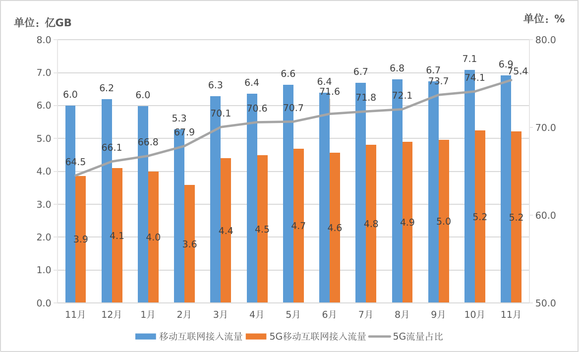 图6. 5G移动互联网接入流量情况及其占比
